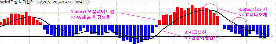 1. macd 오실레이터>>>를 이평방식을 welles 방식으로 부탁합니다.