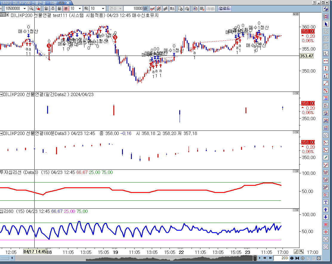 10분봉 차트 시스템에 60분봉의 투자심리선 값을 적용하려고 하는데