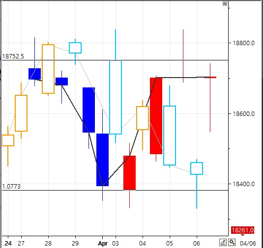 위그림에서 4월3일 닥스 시가는 18752.5 유로 시가는 1.0773 입니다.