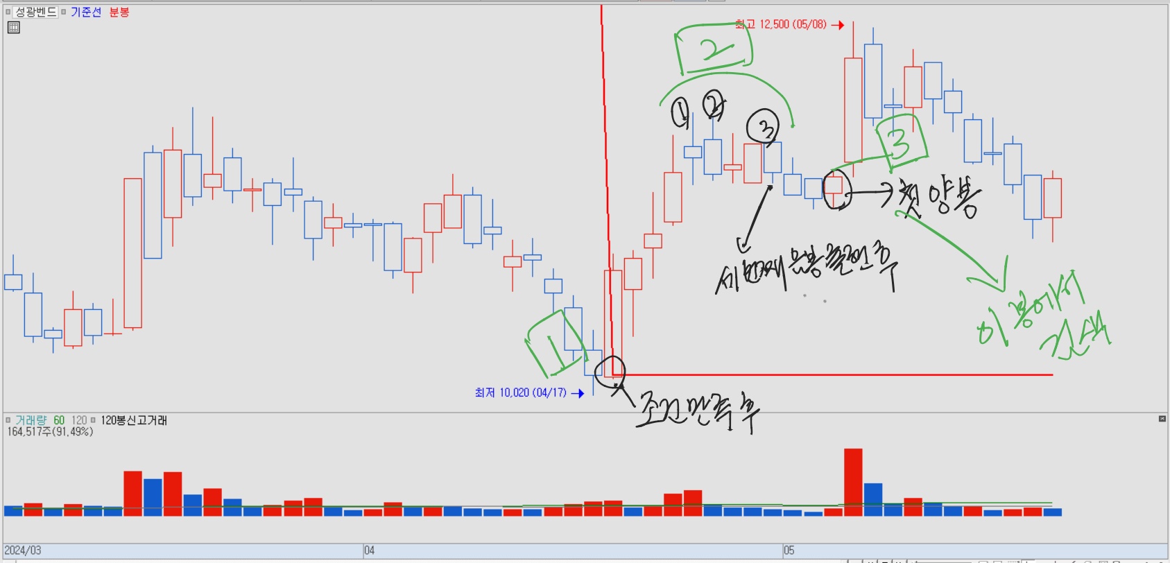 아래 수식을 만족한 후 첫 양봉이 출현하는 종목.