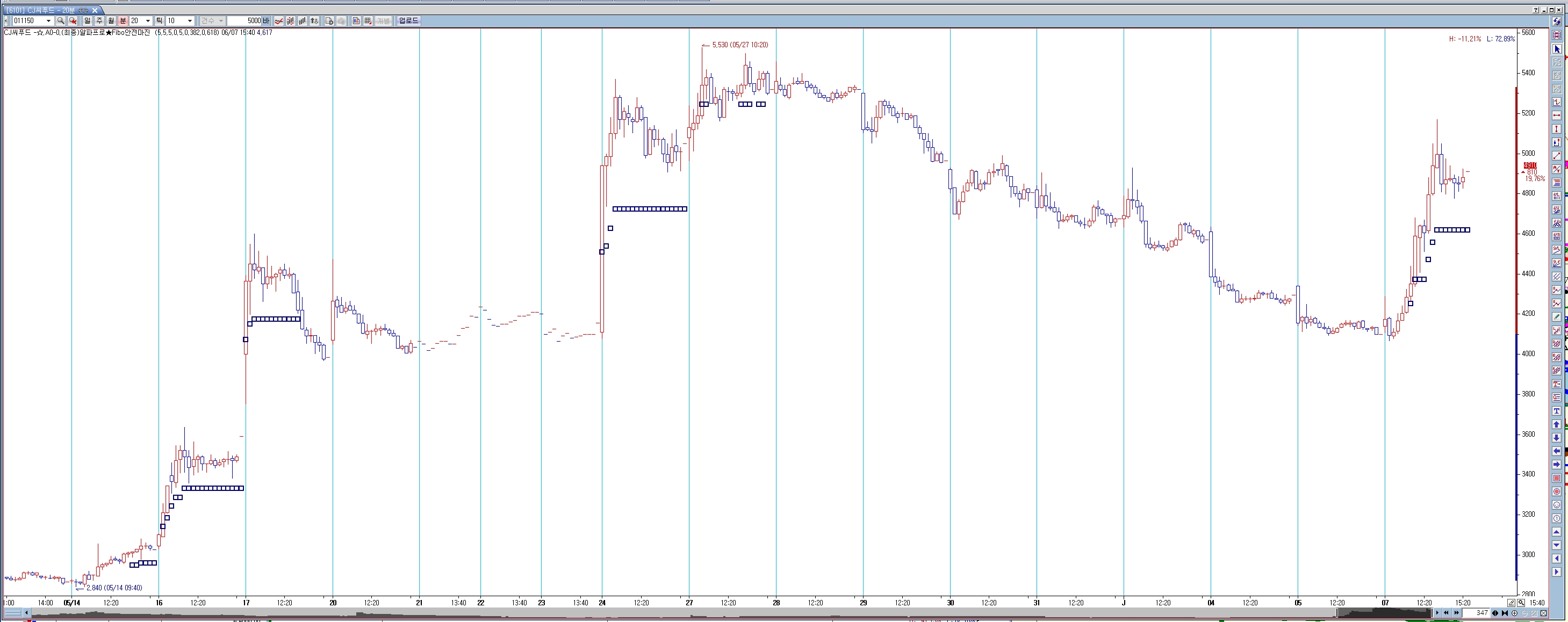 분봉에서 아래 지표를 그리면 그림1처럼 표시되는데