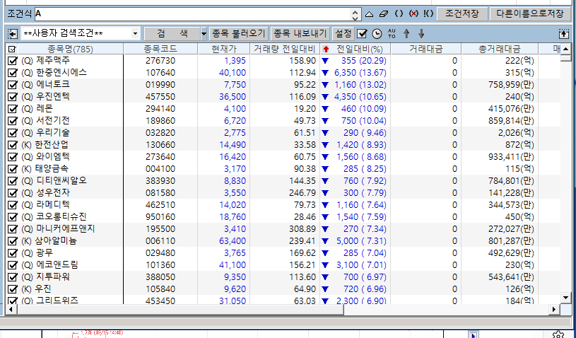 호강형하고는 다릅니다. 호가형으로는 데이터가 제공되지 않아 종목검색식 작성이 가능하지 않습니다.