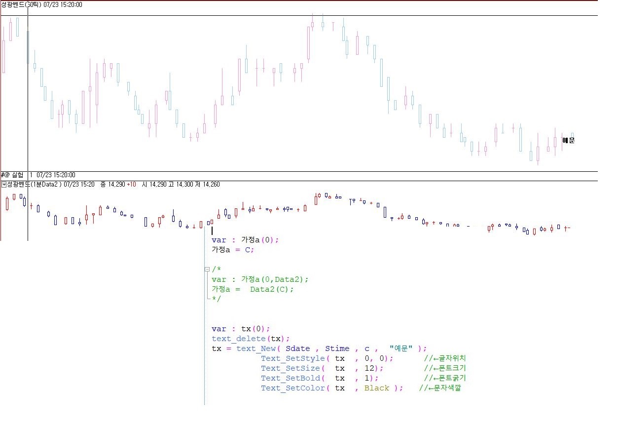 "예문"을 가장 최근캔들에만 나오게 하려면