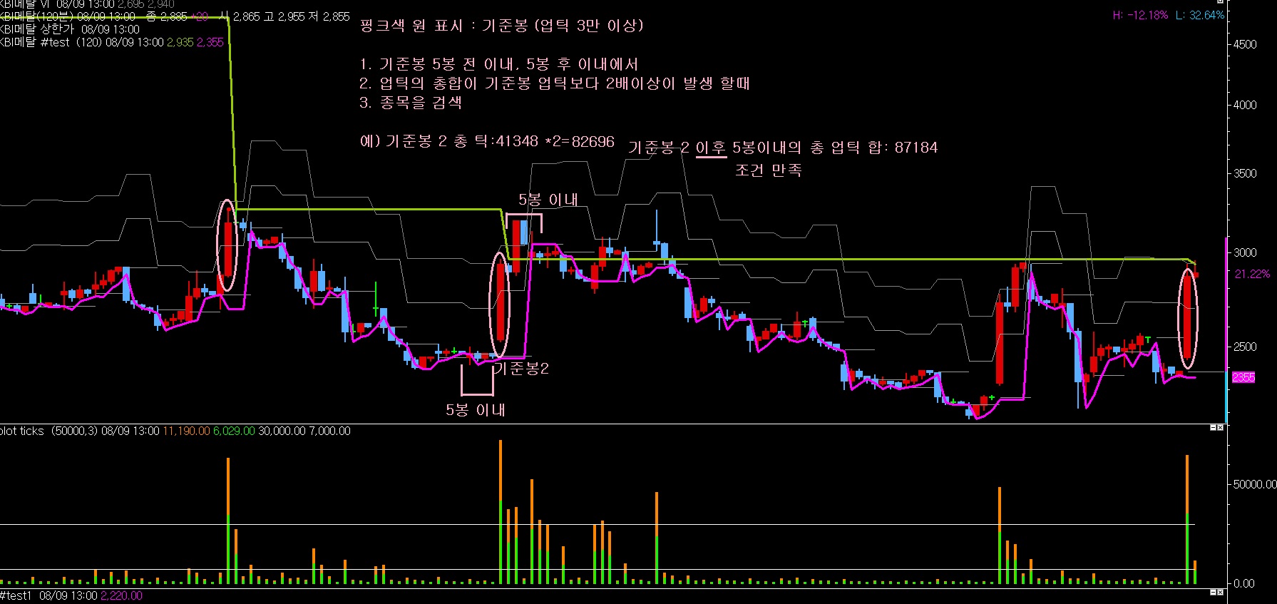 타주기 120봉과, 타주기가 아닌 일반 봉차트에서 각각 수식을 보여주셨으면 좋겠습니다