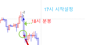 17시에 시작 설정을 하면 18시 분봉에 진입신호가 나옵니다.