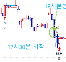 17시10분터 18시까지 시작시간을 설정하면 18시에 나온봉이 진입이 안되고