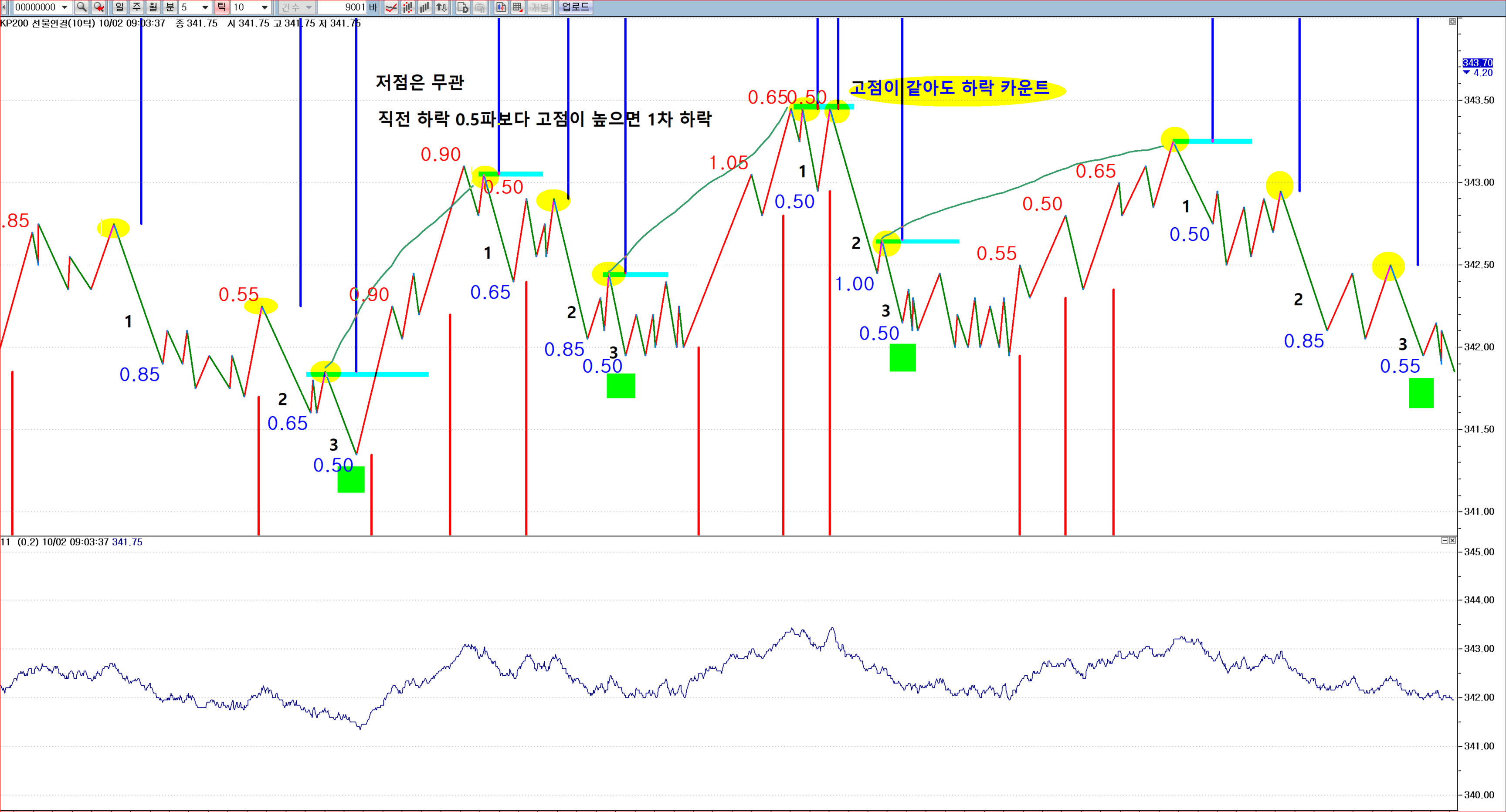 고점이 같거나 낮을 때만 카운트. 직전 하락 0.5파보다 고점이 높으면 다시 새로 카운트.