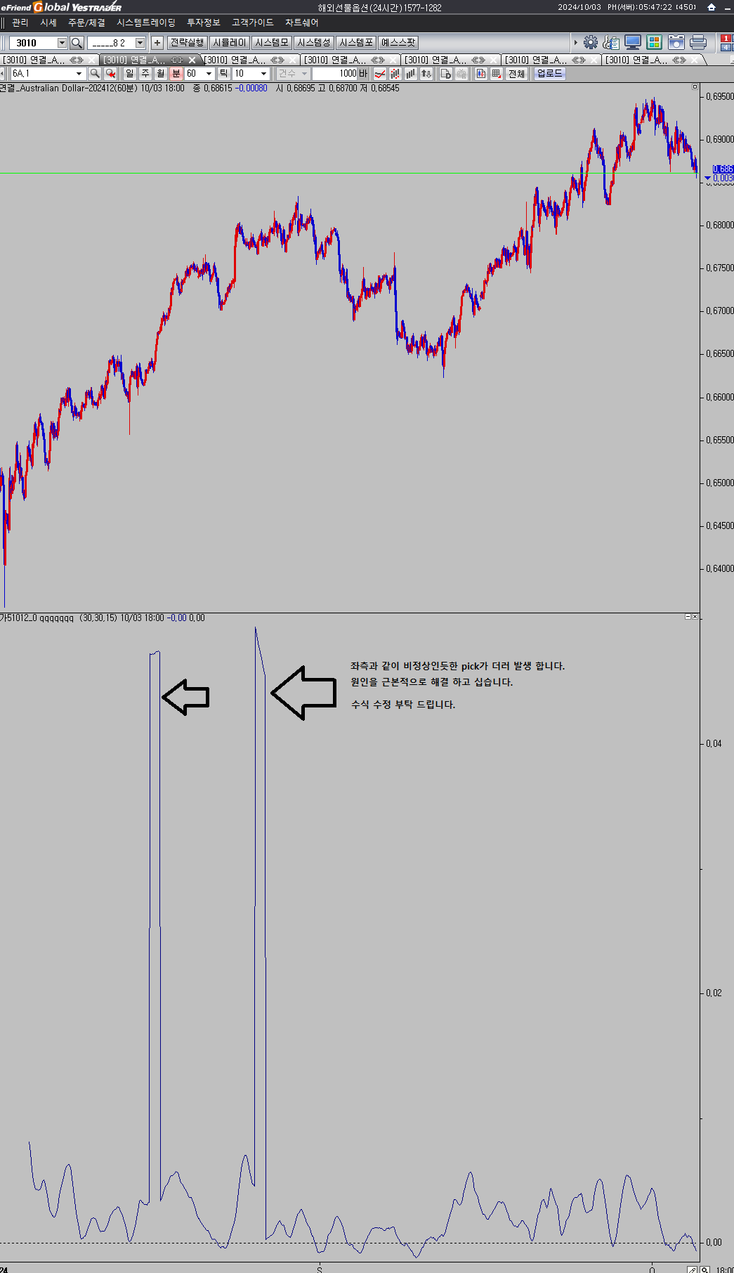 최대계산 변수가 0이 되고 이때는 var1이 종가가 됩니다.