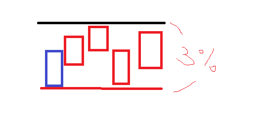 > 고가와 저가 안에서 5봉내 캔들이 움직이면서
