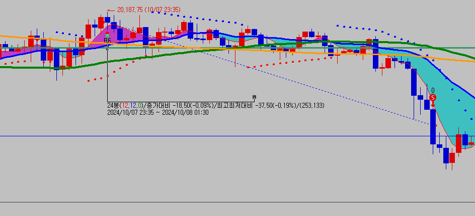 만약 진입이후 24개봉 이후에 진입가-20 이하의 시세가 발생하면 청산이면