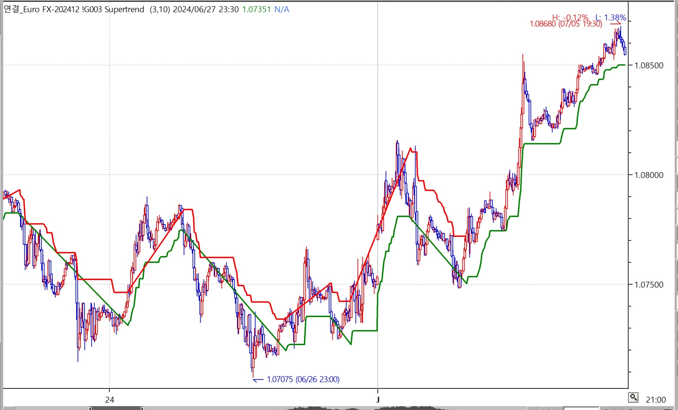 숫자를 바꾸려는 이유는 슈퍼트렌드 2개를 하나의 지표에서 나타내려고 함입니다.