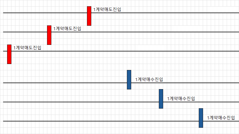 각각의 선을 상향돌파/하향돌파시 일정한 계약수로 역거래를 하려고 하는데요