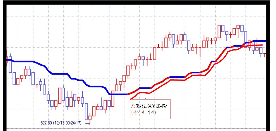 Plot1(기준선,"기준선",iff(기준선>기준선[1],red,blue)) ;