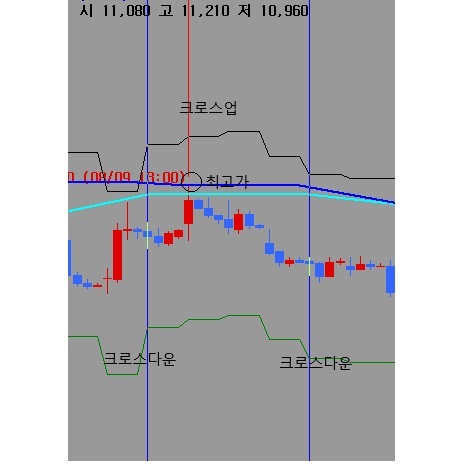 크로스업 했을때 그 봉이 골드발생이후 최고점이라면, (파란색선은 hh 갱신라인)