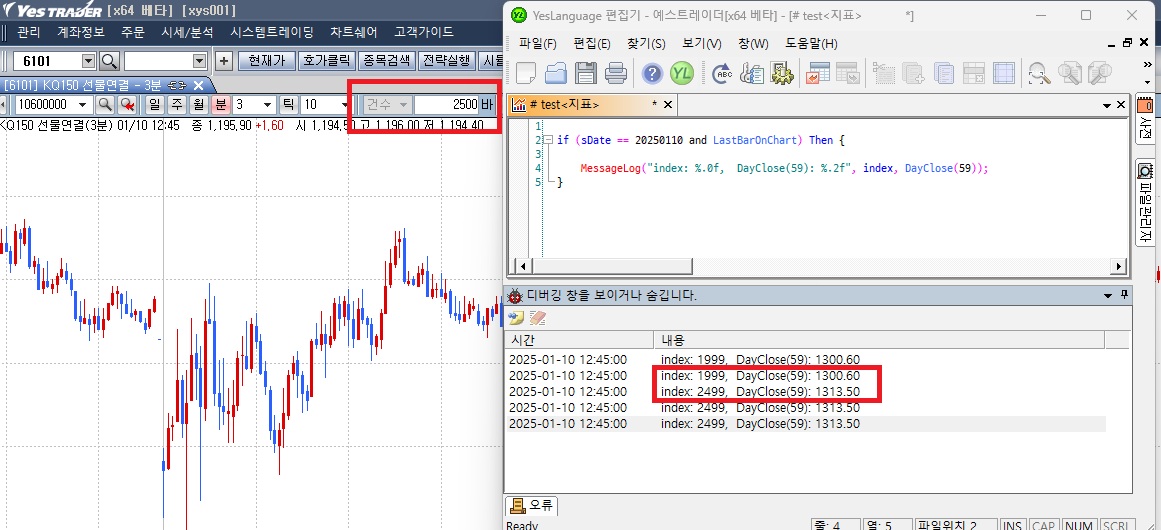 > DayClose 함수가 차트 봉 개수에 따라 다른 값을 반환합니다.