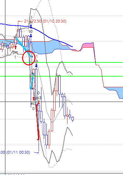 손절시각은 22시31분정도되고 재진입시각은 11시(진입지연3초 설정)여서 증거금 부족도 아닌 상태였습니다.
