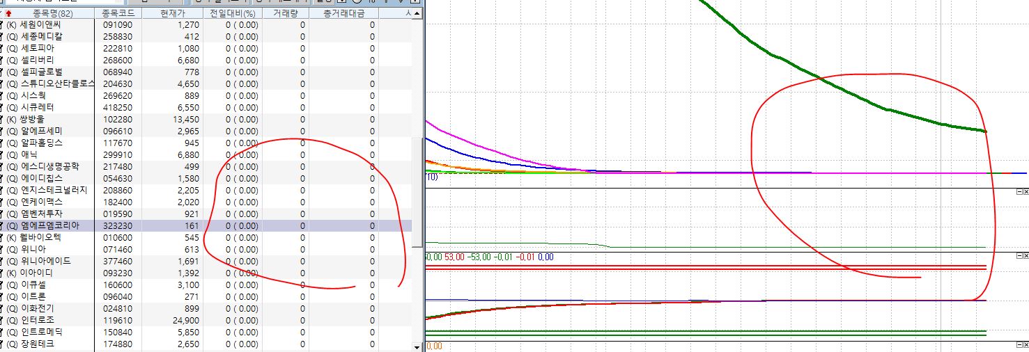 사진처럼 거래량관련 정보랑 차트가 하나도 안그려집니다..