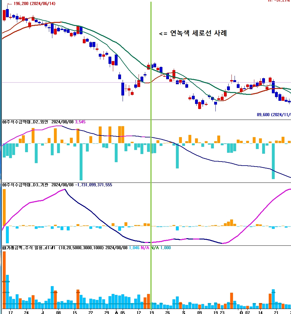 첨부한 그림(연녹색선) 처럼 세로선을 긋고 싶습니다.