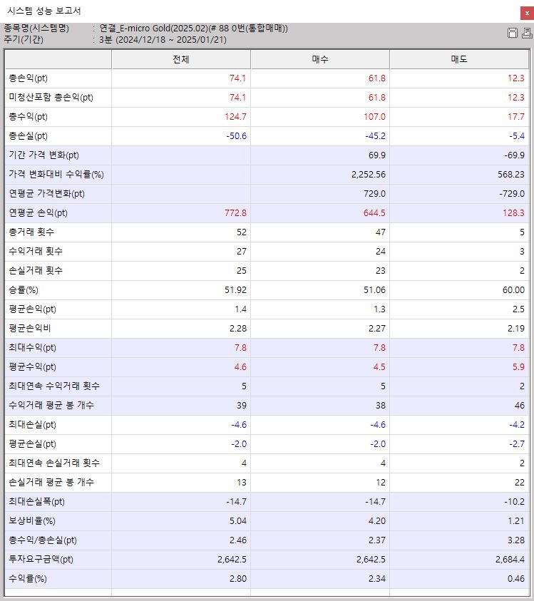 예스트레이더 도움말 --> 시스템 트레이딩 --> 시스템성능보고서