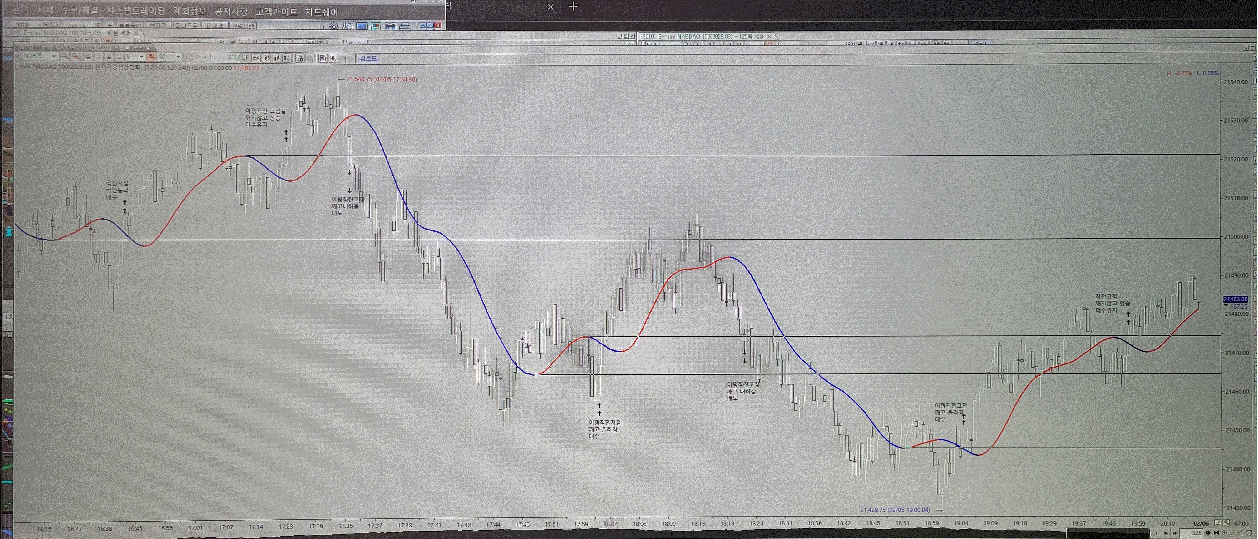 1.캔들이 종가상 20 이평의 직전 저점을 통과하여 상승하면 다음봉에 매수