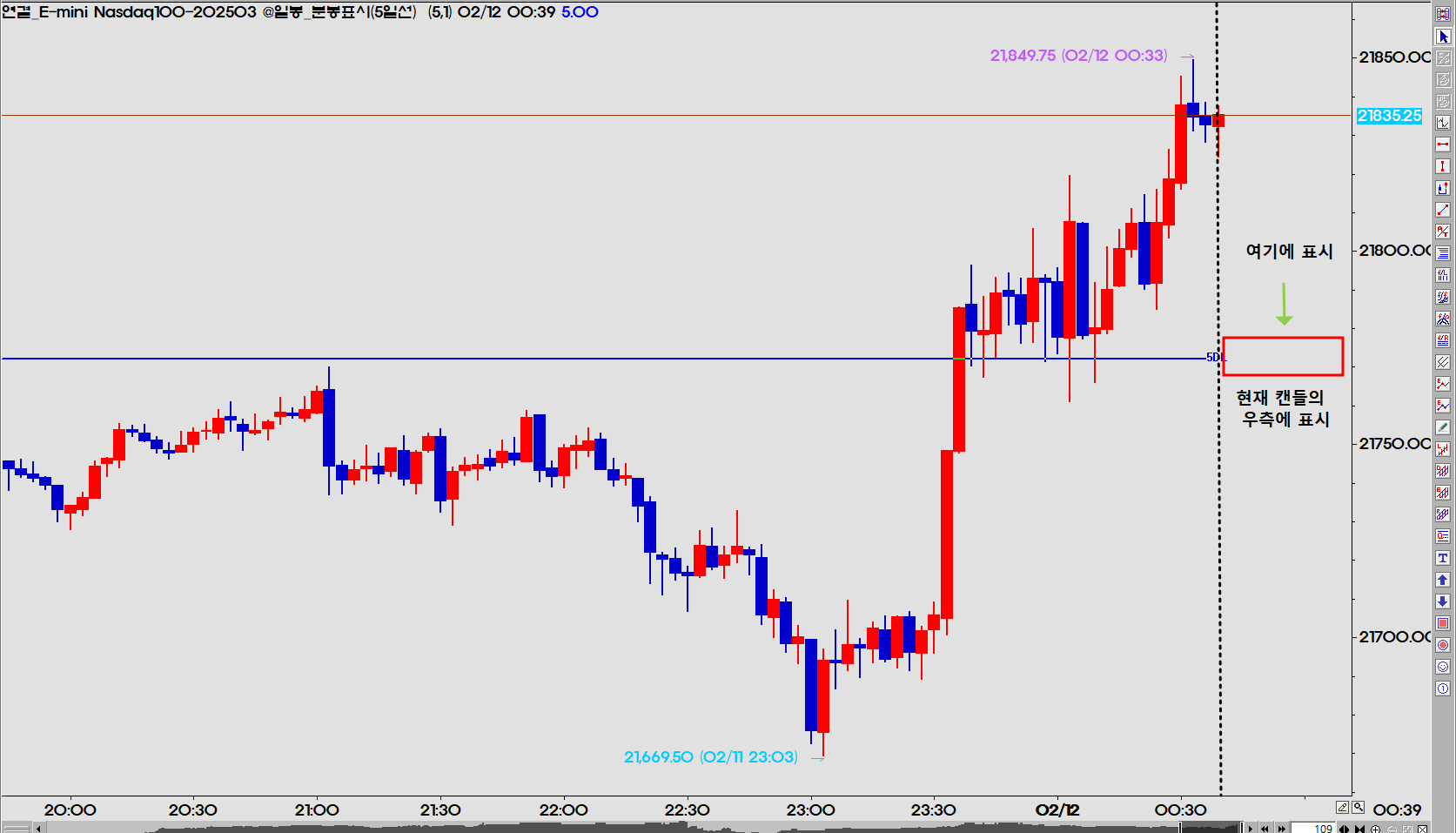 현재 캔들의 라인 보다 우측에 표시되게 수정 부탁드립니다.