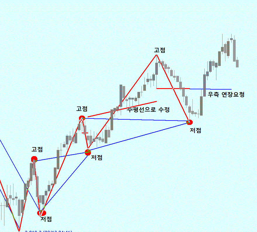 . 고점 상단선은 다음 하단선과 연결 (사진 파란선 참고)