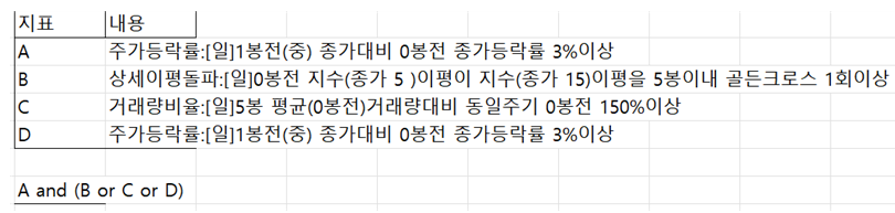 첨부된 키움 검색식을 예스트레이더 검색식으로 전환 작성하여 주시기를 협조드립니다.