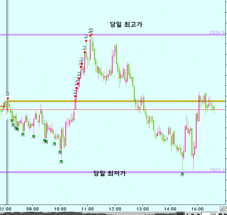 * 당일 최고가선 당일 최저가 수평선좀 부탁 드립니다.