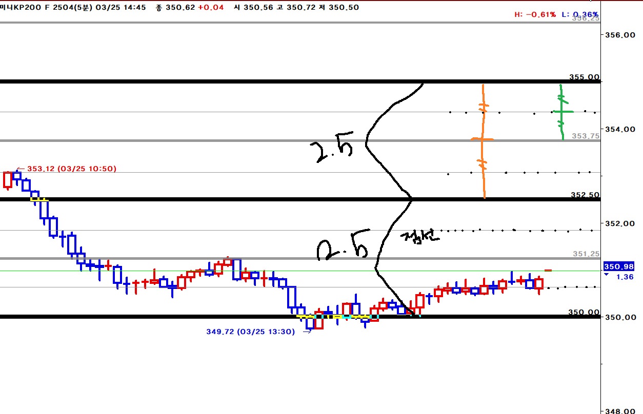 국내선물 거래시 자동으로 아래와 같이 수평선이 생길 수 있는 수식 부탁드립니다.