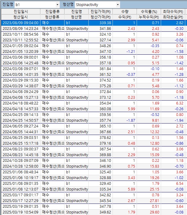 (손절,추적스탑,익절은 구별이 힘든데 최소가격변화는 빈도가 적어서 문제를 발견했습니다)