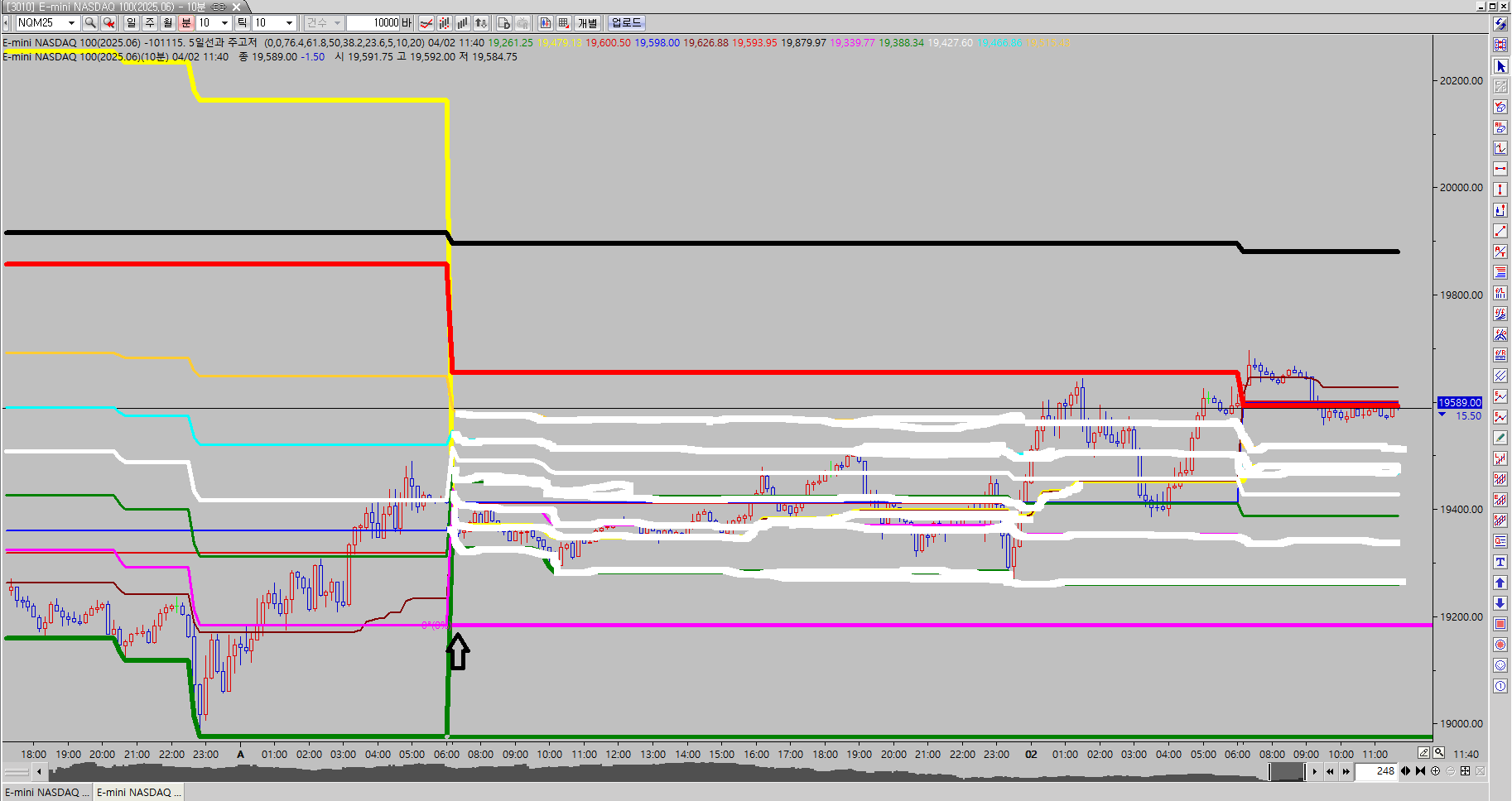 2. 그림파일의 화살표처럼 전일 마감시의 지표값이 당일 차트에 동일한 가격으로