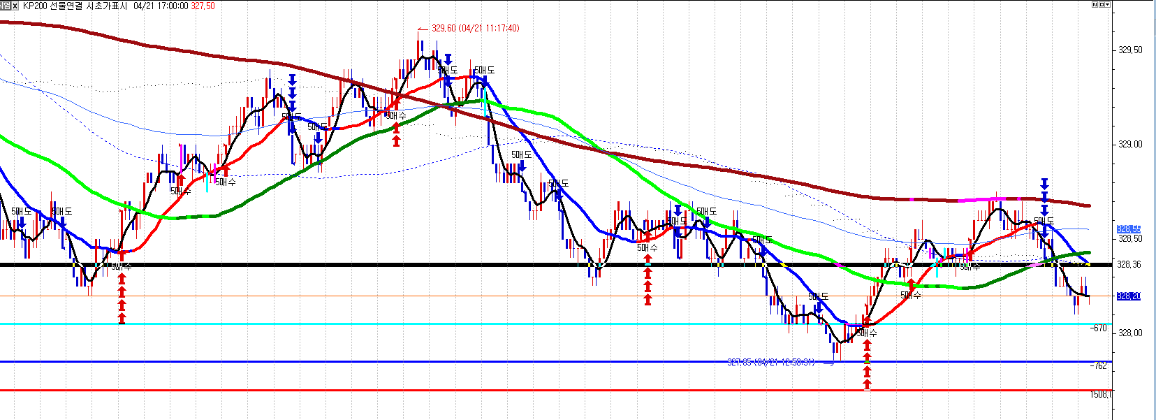 오늘 신호에는 고점의 선이 나오지 않네요