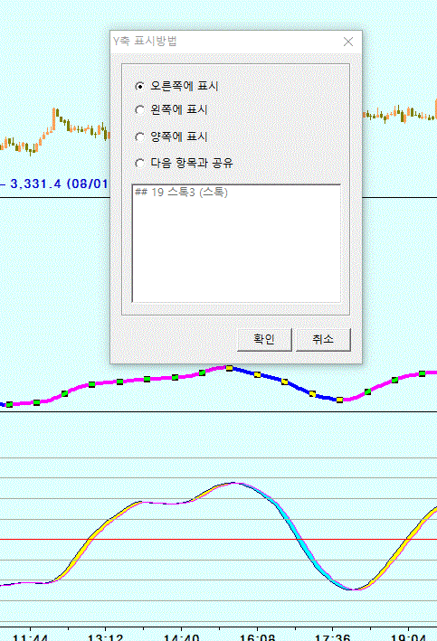 ㅇ아래 수식에서 스톡과 MACD를 "다음 항목과 공유" 하면 (사진1)