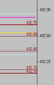 첨부된 사진과 같이 432.75, 432.60, 432.40, 432.15, 432.10 이렇게 5개의 선을 긋고 그 가격이 표시되도록 하는 수식좀 알려주시면 됩니다.