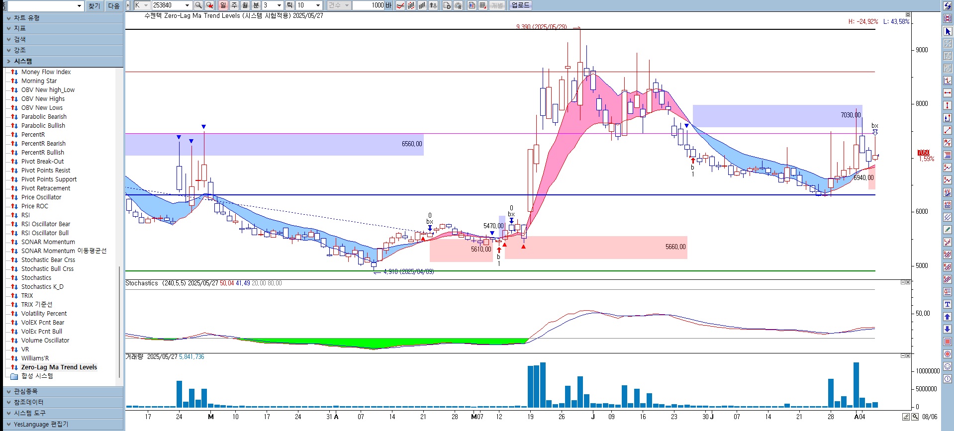 다만 기존의 지표는 조건이 만족하면 [한봉전]에 ▲/▼표시를 하게 되어 있었지만