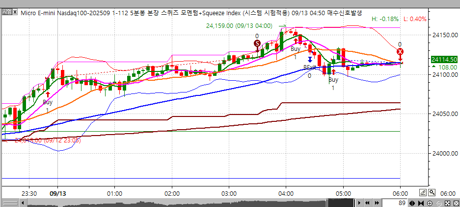 > 변수값 최적화를 위해서 5분봉 챠트로 2/24~9/13일까지 시뮬레이션 챠트를 돌려보니 9/8~9/12일까지의 거래 내역이 전략실행 챠트에서는 있었으나 시뮬레이션 챠트에서는 나타나지 않는데 왜 그럴까요?