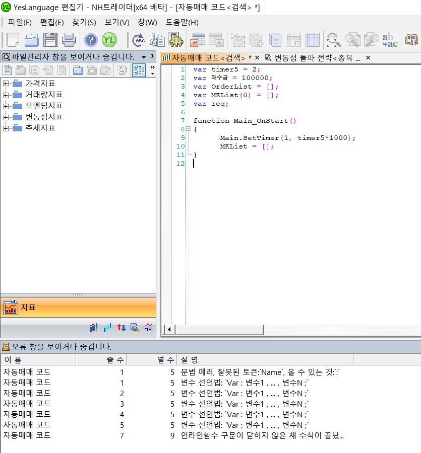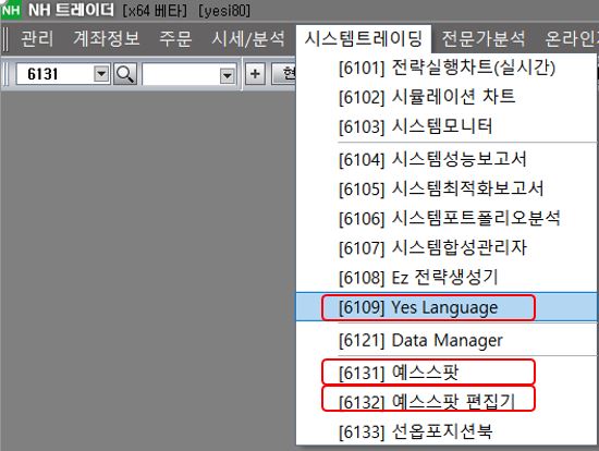 수직작성을 NH트레이더 / 시스템 트레이딩 / [6109]YesLangueage 편집기를 사용하여
