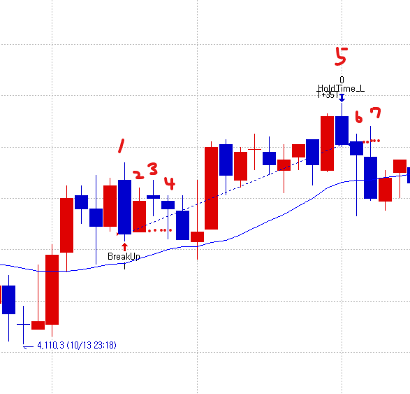 청산도 5번 조건 만족하면 6번 시가 진입 하지 못하고 7번이 6번 시가를 터치 하면서 채결이 되는데 특이한게 조건 만족하면서 35틱 수익이라고 표시하면서 바로 청산이 안되고 7번 35틱 수익 표시 값에 맞게 청산이 되더라고요.