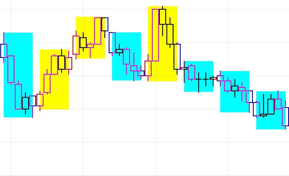 4. Box의 중간값이 앞봉보다 낮으면은 만들어진 그 Box 의 색을 하늘색으로 한다