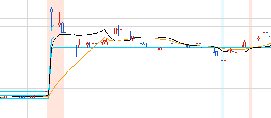 위 내용을 보조지표로 사용하는데 밑에 사진처럼 차트에 봉 색깔이 아닌 배경 색깔로 RSI과열(연빨강)과 침체(연파랑)를 강조표시를 할 수 있을까요?