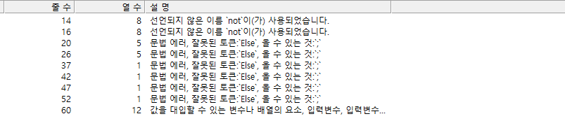 아래수식을 적용하니 첨부에러메세지가 뜨는데 오류수정좀 부탁드립니다