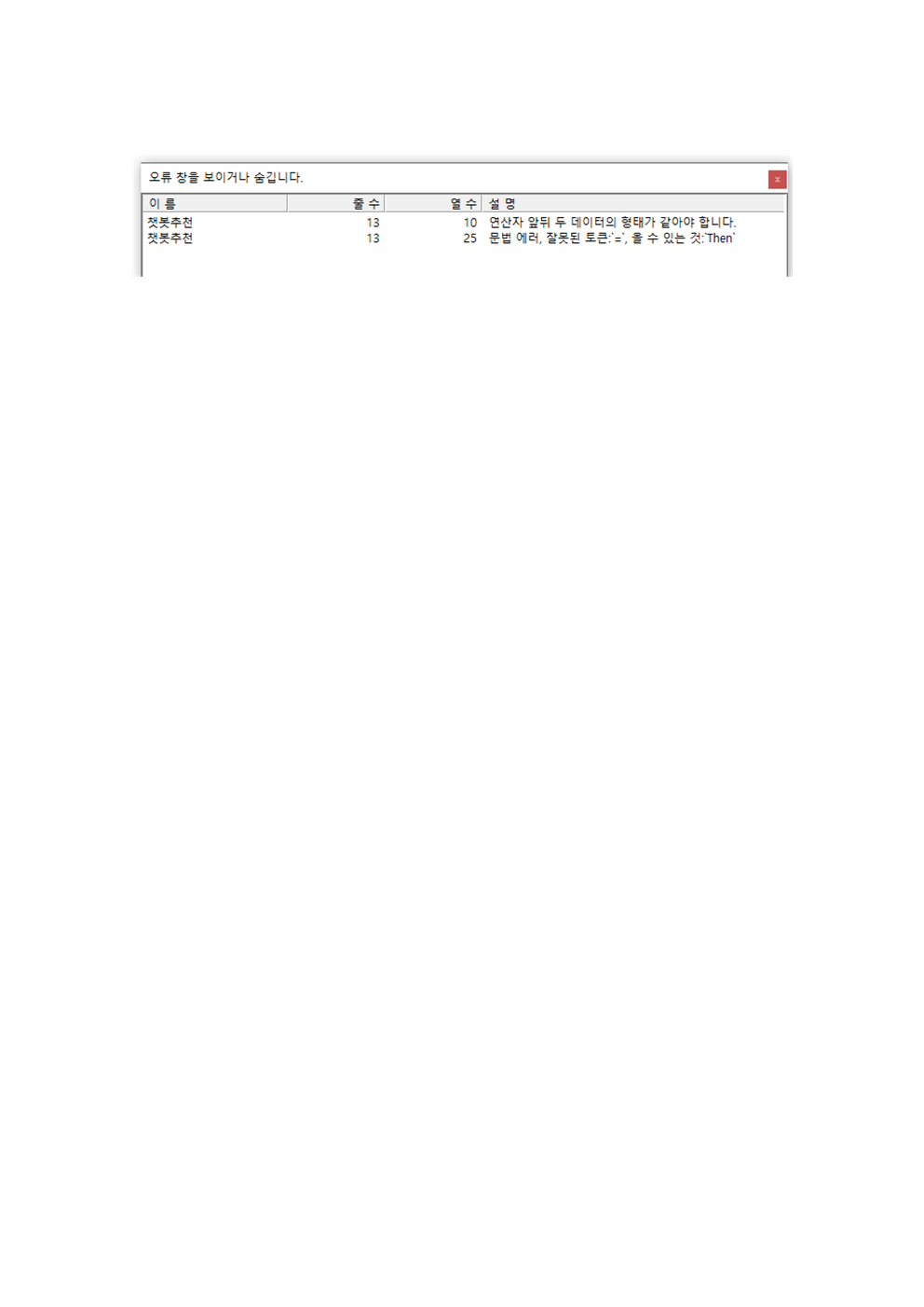 종목검색식 수정 부탁드림니다.
