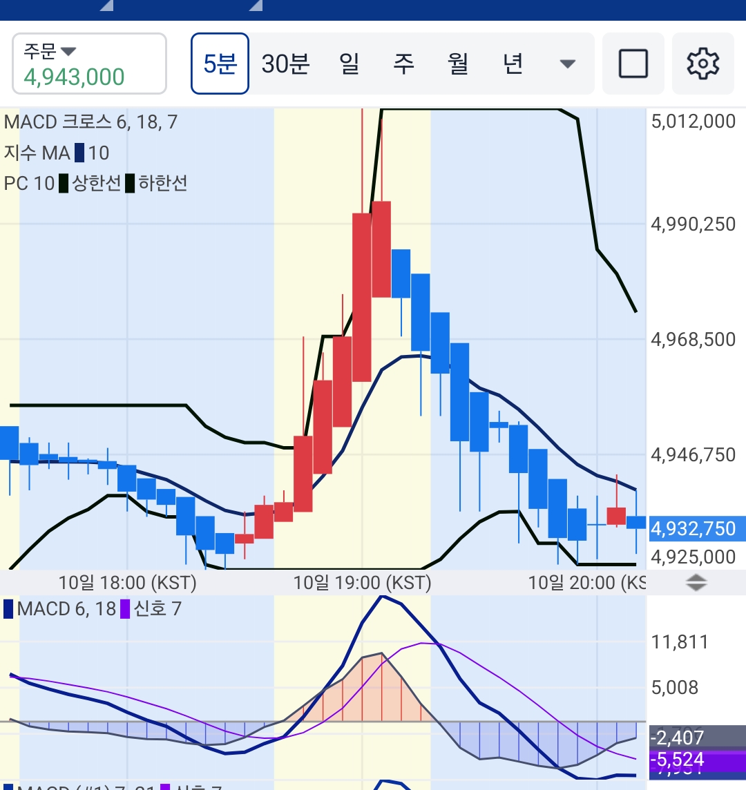 MACD(6,18,7) 0선 돌파시 매수유지를 하다가