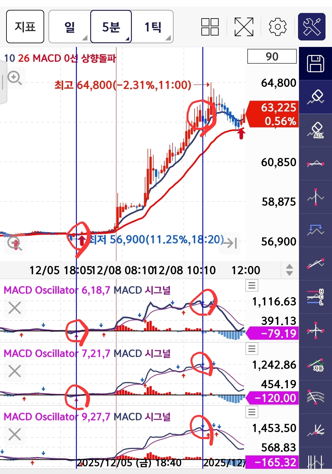 3개의 macd를 이용해서 0선아래서 1개의 macd가 골든크로스 발생시는 가짜신호라 무시
