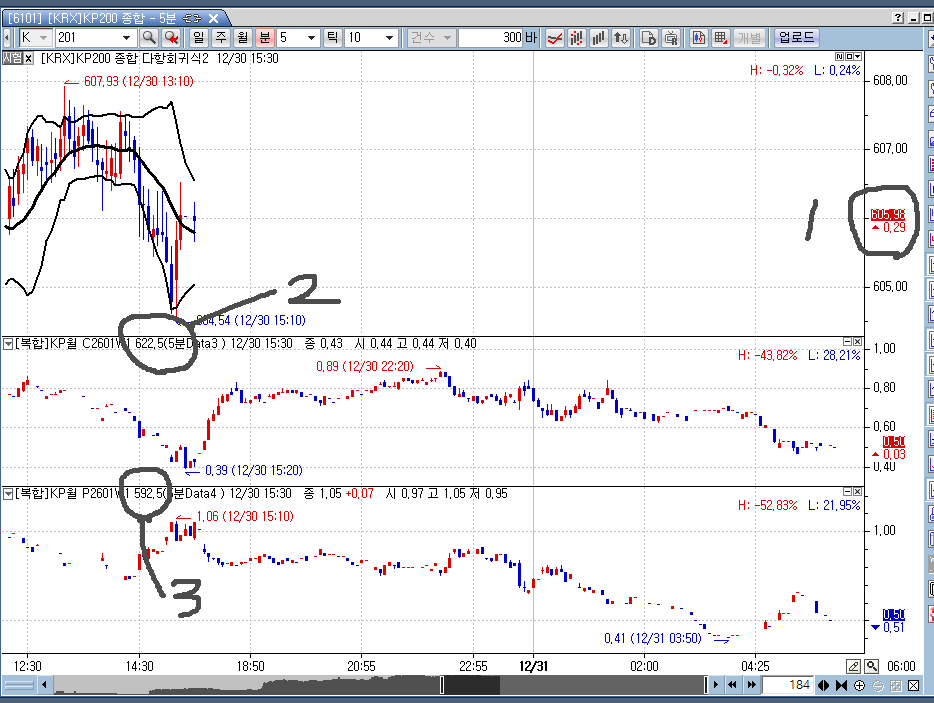 2번 622.5의 행사가와 3번 592.5 행사가를