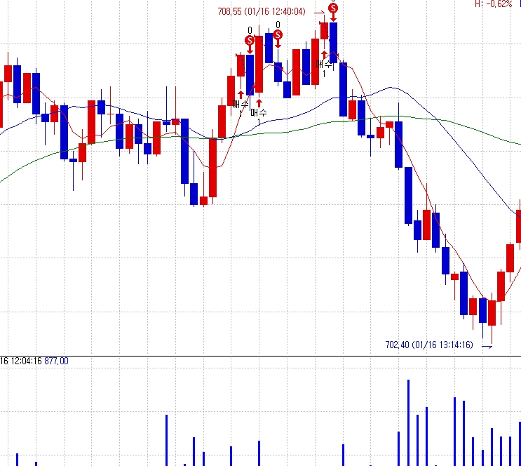 예를 들어, "A"매수신호가 발생한 이후에 20개 캔들 이내에서는 다시 발생하지 않게 하는 것입니다.