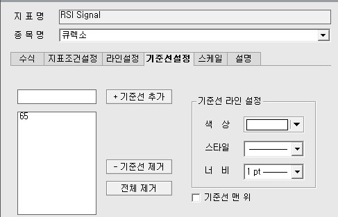 일봉상 RSI 14 기준선 65을 통과 후 양봉일때만 종목 검색이 될수 있도록 부탁드립니다.