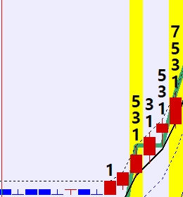 1분봉 거래대금이 50억 이상이면 캔들 위에 숫자 5가 표시되고
