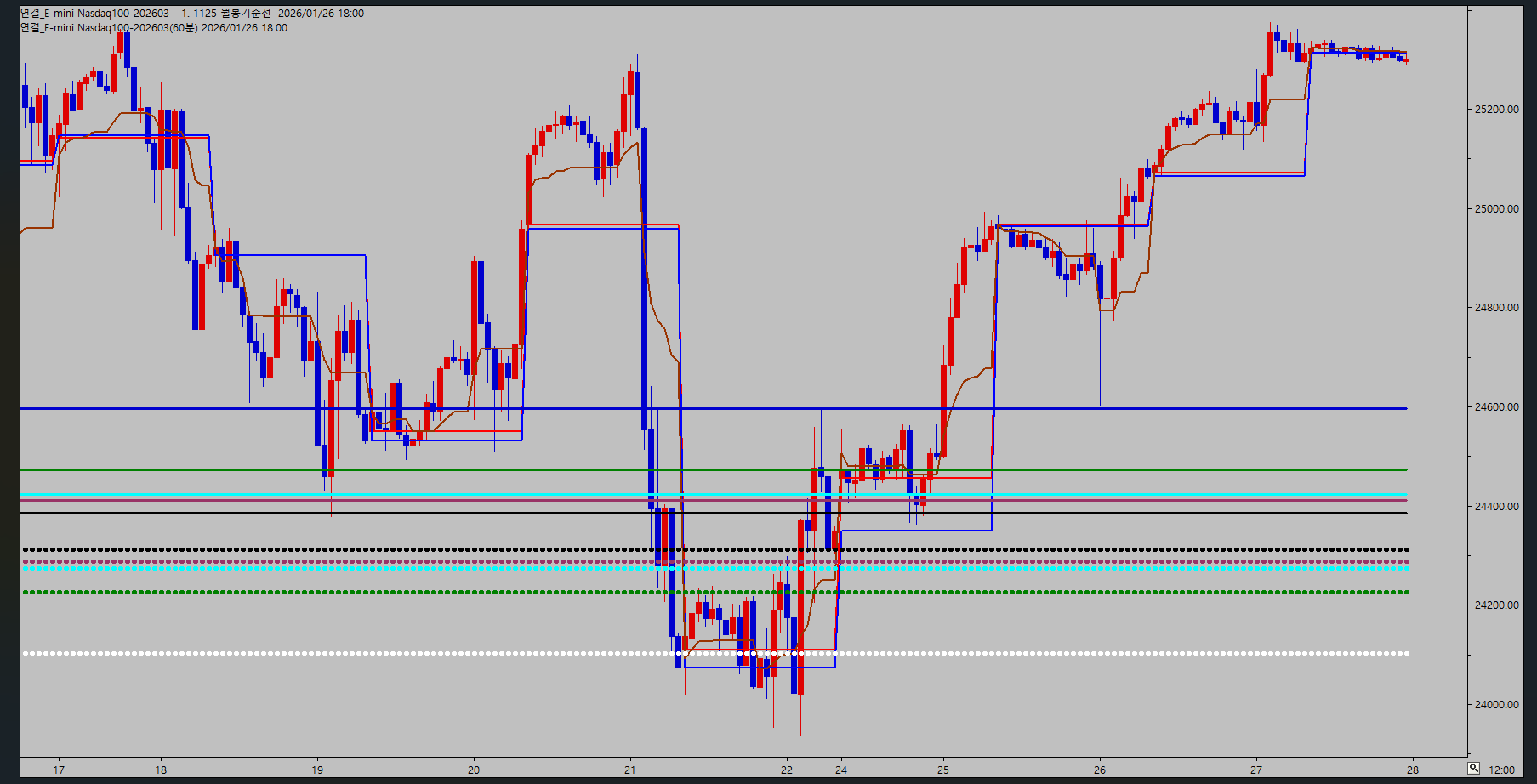 11/22일 종가에 더하고 뺀 가격으로 plot지표를 만든 것인데