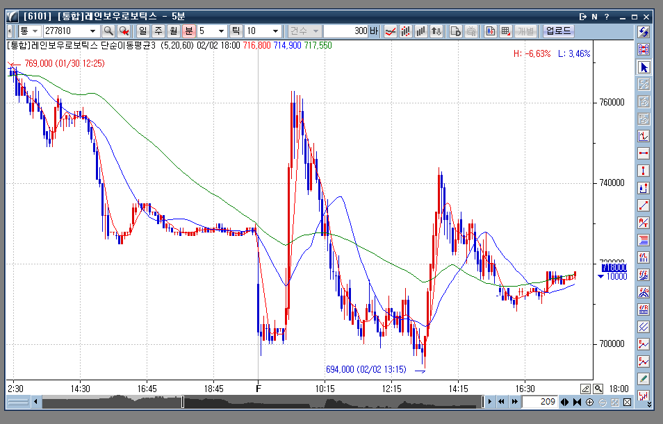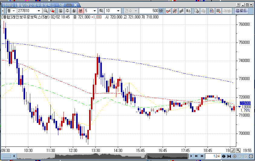 2번 파일(그림2)은 컴을 초기화 후 HTS를 새로 다운로드해서 실행한 차트입니다